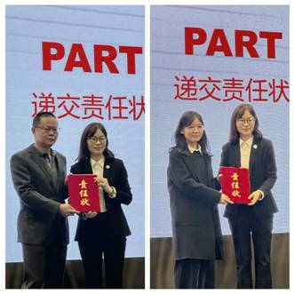 接著,事業(yè)部及職能部門負(fù)責(zé)人分別向朱劍碧董事長(zhǎng)遞交了2026年度經(jīng)營(yíng)目標(biāo)、維穩(wěn)綜治、安全生產(chǎn)、環(huán)境保護(hù)等責(zé)任書。