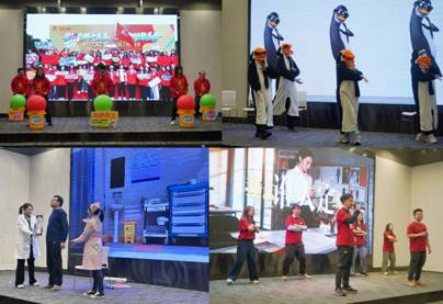 會(huì)議在歡樂(lè)的氛圍中進(jìn)行最后一項(xiàng)議程——紡出公司春節(jié)文藝表演。節(jié)目《旗開得勝》以霸氣的鼓聲震撼開場(chǎng);小品《織夢(mèng)同心,微力無(wú)邊》調(diào)侃出紡出人工作中的歡樂(lè)點(diǎn)滴;小品《不一樣的互聯(lián)網(wǎng)體檢》以詼諧的方式演繹了當(dāng)代人的“數(shù)字煩惱”;《馬到成功不猶豫》用斗志昂揚(yáng)的歌聲表達(dá)了對(duì)未來(lái)的憧憬。