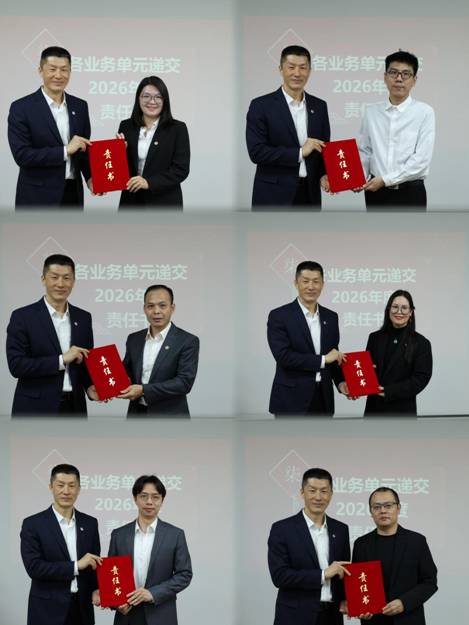 各業(yè)務(wù)單元、部門向公司領(lǐng)導(dǎo)遞交2026年度各項(xiàng)目標(biāo)管理責(zé)任書。