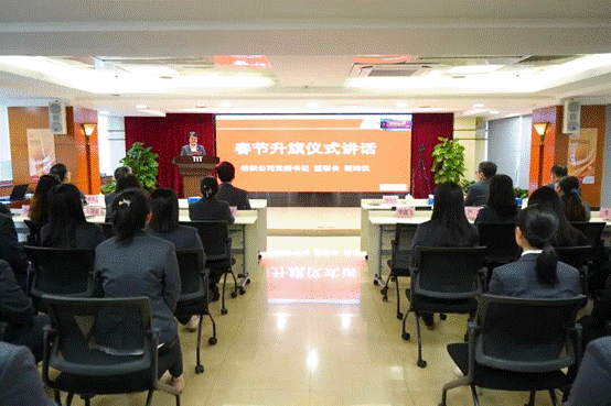 公司在廣德大廈15樓禮堂隆重舉行升國(guó)旗儀式。在雄壯的國(guó)歌聲中,全體人員肅立注目,表達(dá)對(duì)偉大祖國(guó)的無(wú)限熱愛(ài)和崇高敬意。公司黨委書(shū)記、董事長(zhǎng)簡(jiǎn)瑋儀代表領(lǐng)導(dǎo)班子發(fā)表致辭。她指出,過(guò)去一年全體紡織人迎難而上、砥礪奮進(jìn),圓滿(mǎn)完成了“十四五”各項(xiàng)目標(biāo)任務(wù)。2026年是“十五五”規(guī)劃的開(kāi)局之年,也是公司實(shí)現(xiàn)新跨越的關(guān)鍵之年。她號(hào)召全體干部職工緊緊圍繞“改革創(chuàng)新齊奮進(jìn),智鏈全球拓新局”年度主題,以“一馬當(dāng)先”的銳氣、“快馬加鞭”的勁頭,錨定目標(biāo)、聚力攻堅(jiān),奮力奪取開(kāi)局之年“開(kāi)門(mén)紅”。