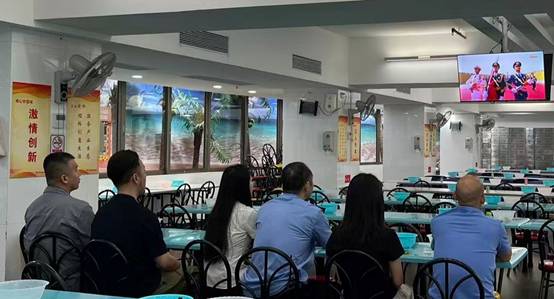 在重點項目現(xiàn)場、工廠園區(qū)組織觀看閱兵直播